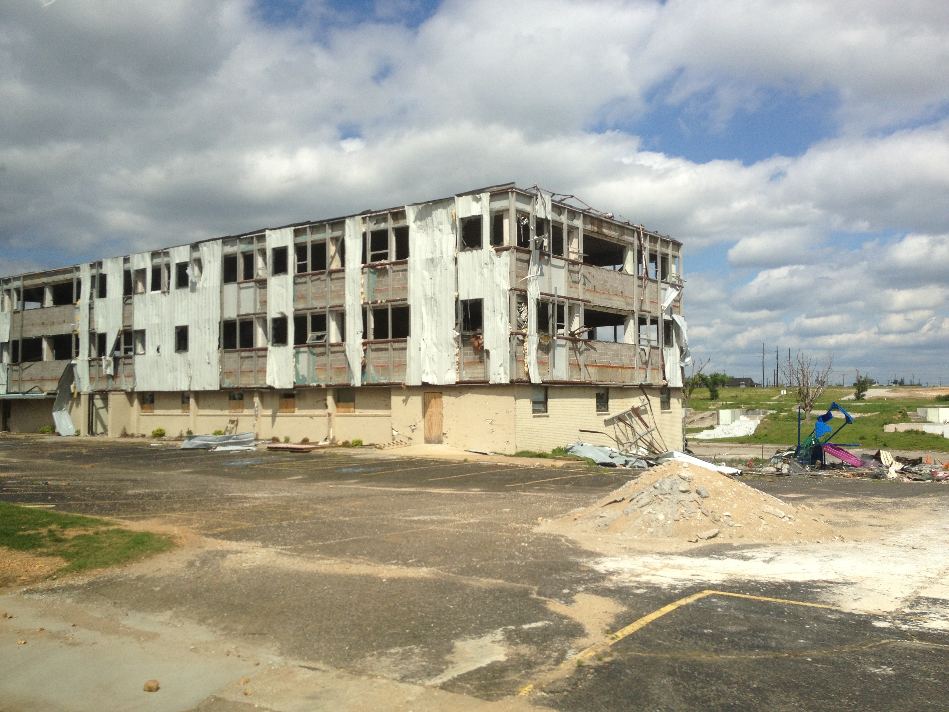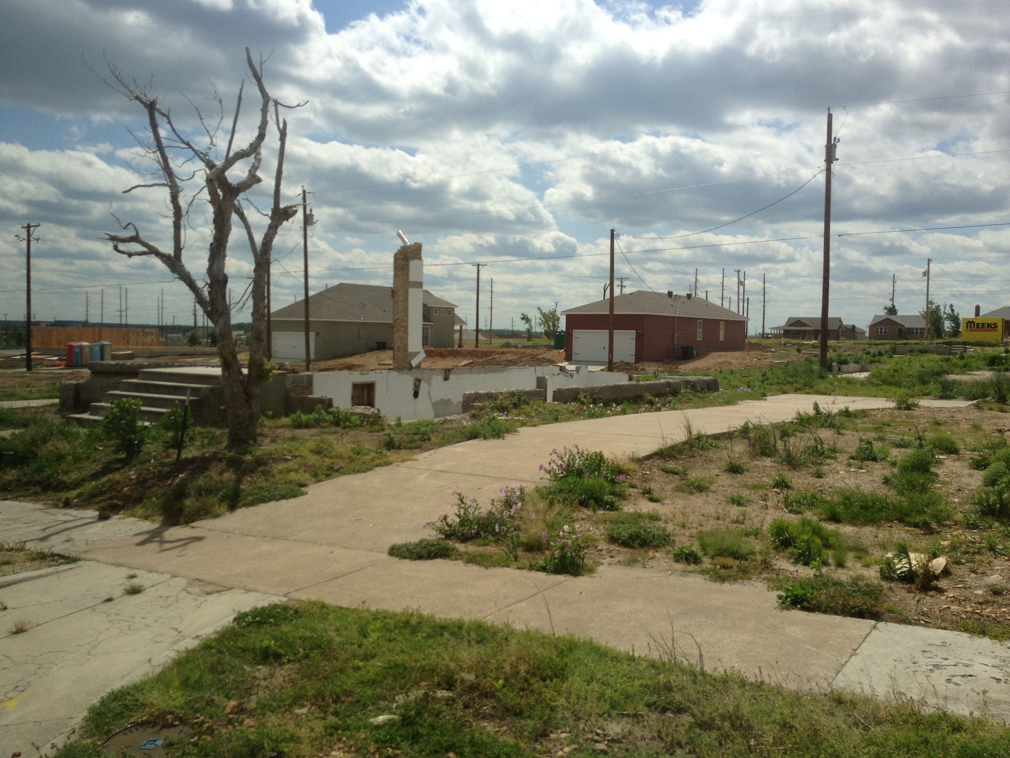 Sunday, April 22nd, 2012After lunch, we drove around Joplin, viewing all of the destruction. Almost all of the debris has been cleaned up, and many new houses have gone up. We even drove by the 7 new houses that were built by Extreme Makeover. There were many foundations remaining without any house on it. Lots of open areas where I am sure there used to be houses.